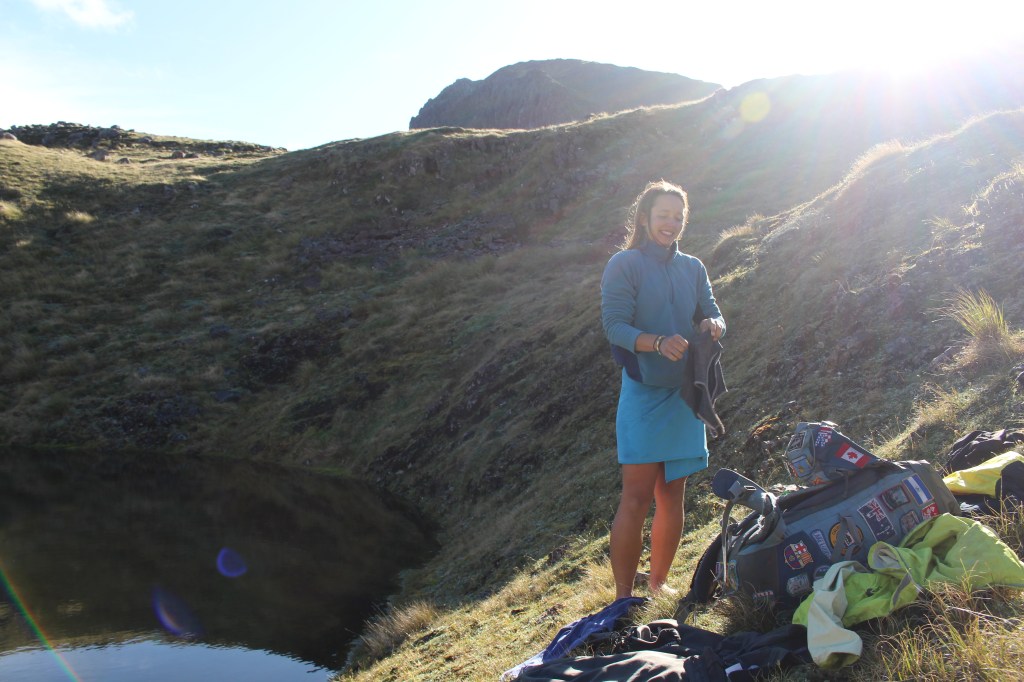 After a lovely swim in the barely thigh deep tarn, a cheesy radix photoshoot and setting up our exclusively orange tents in a cute culty circle, we decided that there was only one thing to do. All gather in my two person tent and play yahtzee, obviously. The pot luck of chocolate, oreos and two flasks of whisky went down a treat, despite only two of us drinking. I can’t remember who won yahtzee but Shaun did make a nice comeback after completely failing with an accidental Yahtzee on his last roll.