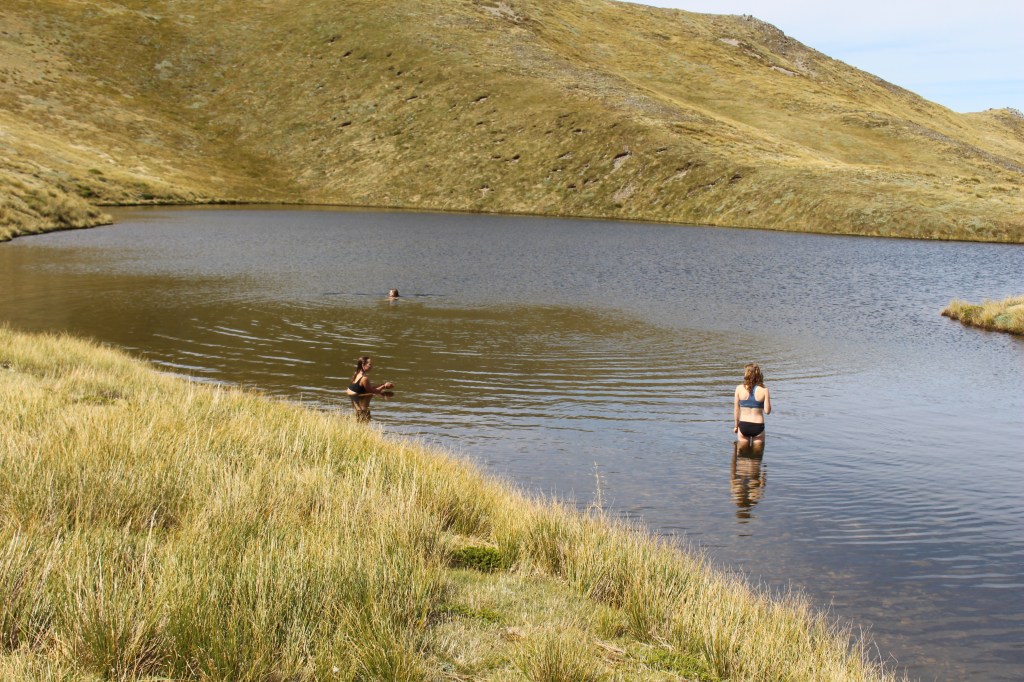 In the morning, us girls decided to go summit Pt. 1602 while the lazy boys slept. Back at the tent, we plotted our route for the day which included a summit of all eight high points on the way and off we went. After Lucretia we stopped and had lunch by the double tarns where we went for a cool explore and another swim in silty knee deep water. It was an absolute stunner of a day and boiling hot.