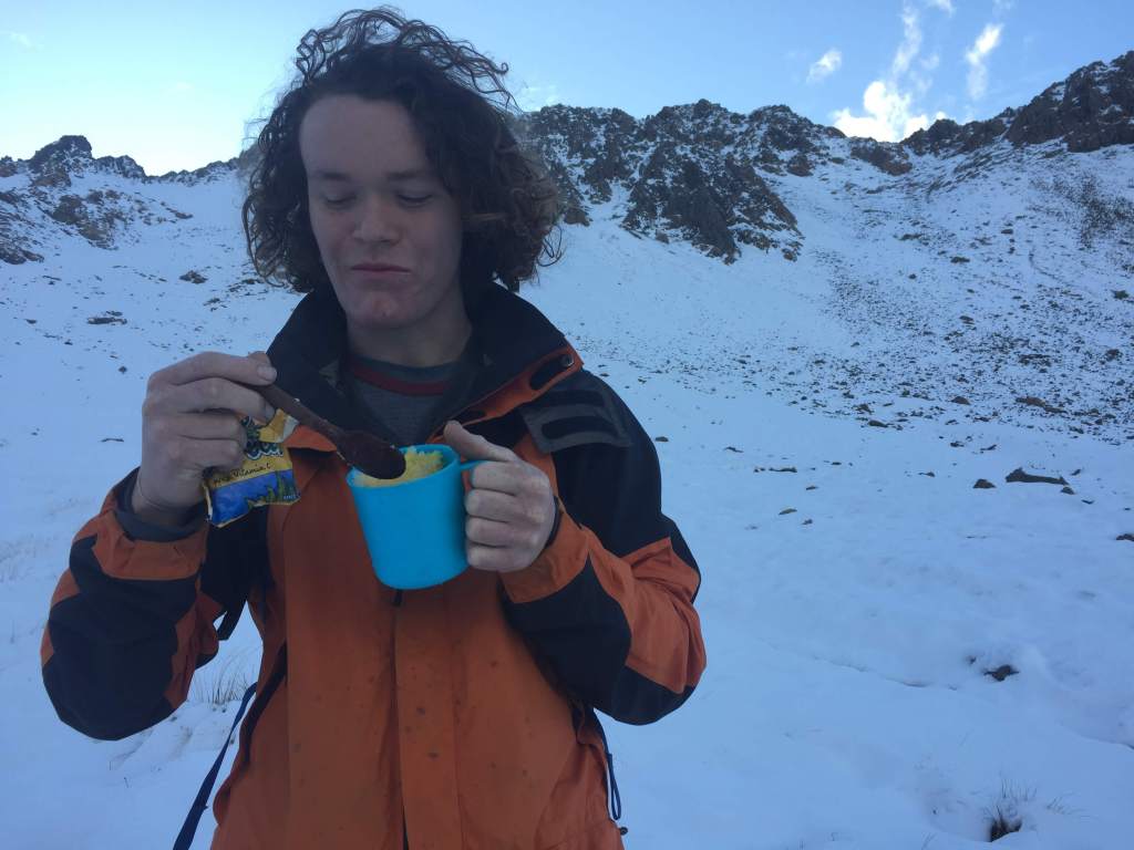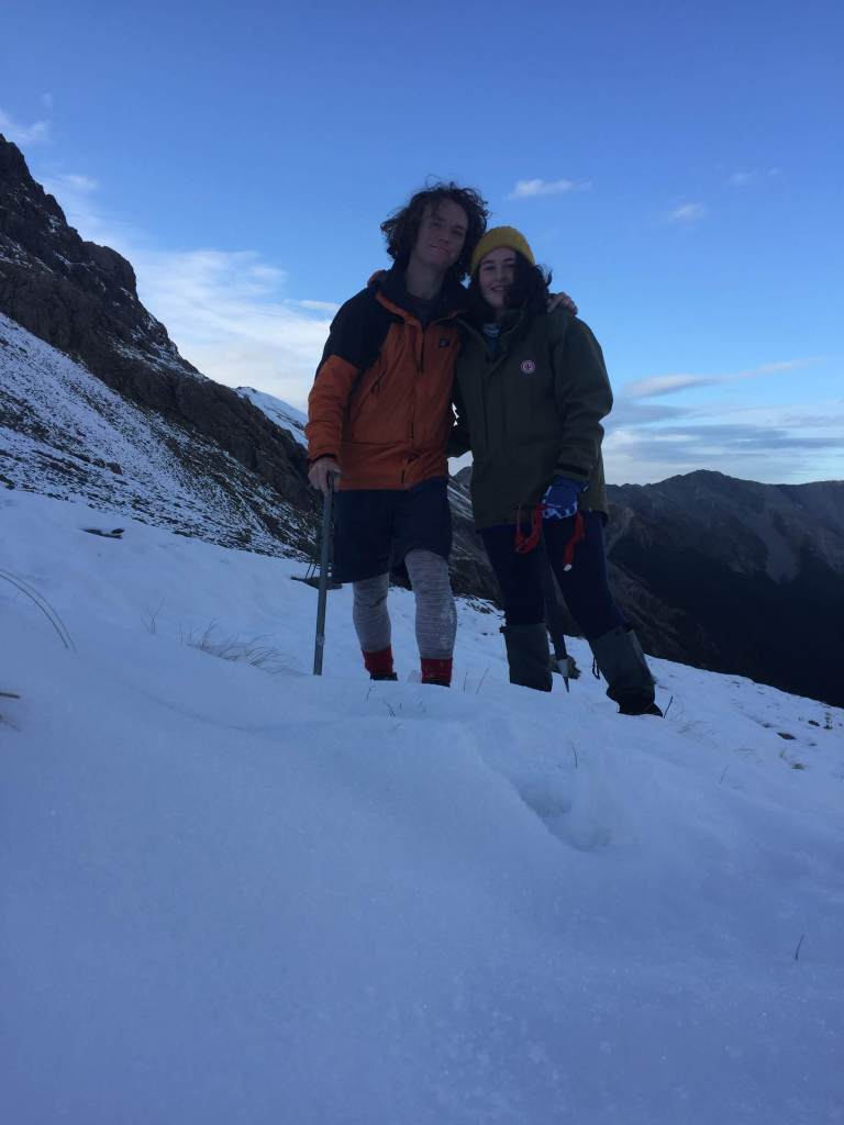 Mountains are a lot bigger than they look, so that turned out to be not suuuper far up, but we got some snow, and we got to walk across some steep, frozen scree. Now, Max has a habit of terrifying people he goes tramping with and running out of people to go tramping with. And while this didn’t actually put me off, the knowledge that I realistically couldn’t self-arrest with a broken wrist made it not the most chill thing I’ve ever done, and possibly not the smartest either.