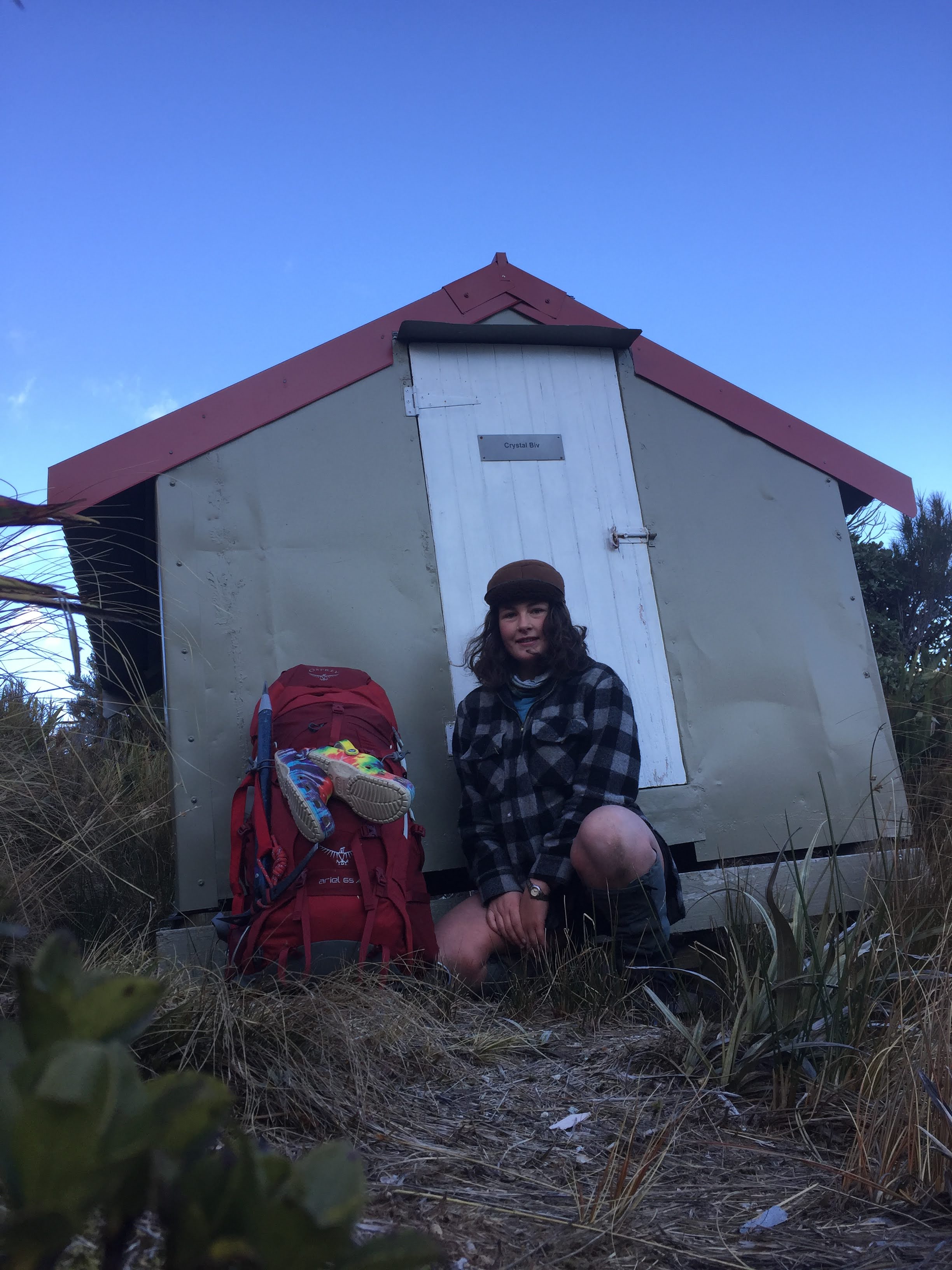 My frustrating day was rewarded with the coldest night of my life. Going to bed at 6:30 and lying there shivering for three hours is NOT the vibe. And waking up to a frozen water tank, and frozen boots is also not great. But whatever, I walked up and over the tops, only fucked up once, when I realised I’d been enjoying them too much and walked way too far along, and slid all the way down to Crystal biv coz I wanted to have a look, then, on the advice of the hut books, and with just a little ptsd from Yeats Ridge, took the ridiculously steep Crystal Ridge back down to the DOC track that lead me back to Cedar Flats hut, a 7-ish hour day, good times.