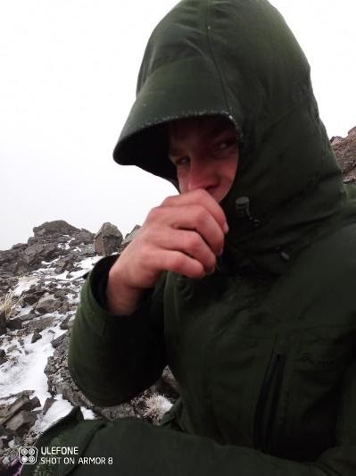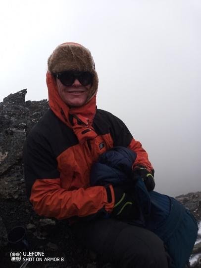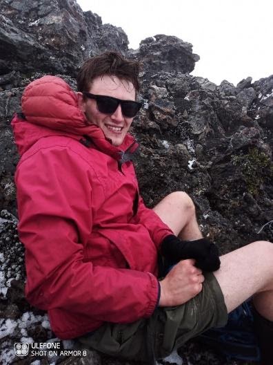 At last we made it onto the ridge and despite the whiteout could see where the top should be. There was just one steep section in the way. I tried doing a boulder problem which worked but felt a bit sketch. I pointed out another route, however this turned out to be even worse with a sheer drop off below and managed to give the others a wee scare (typical taking route advice from me). The wind was pretty strong at this point, but we angled ourselves forwards and made the last wee push to the top. After some excited screaming and shouting we settled down in some shelter to brew a cuppa. Just as well we did, because the cloud blew over in this time and we got to take some sweet photos.