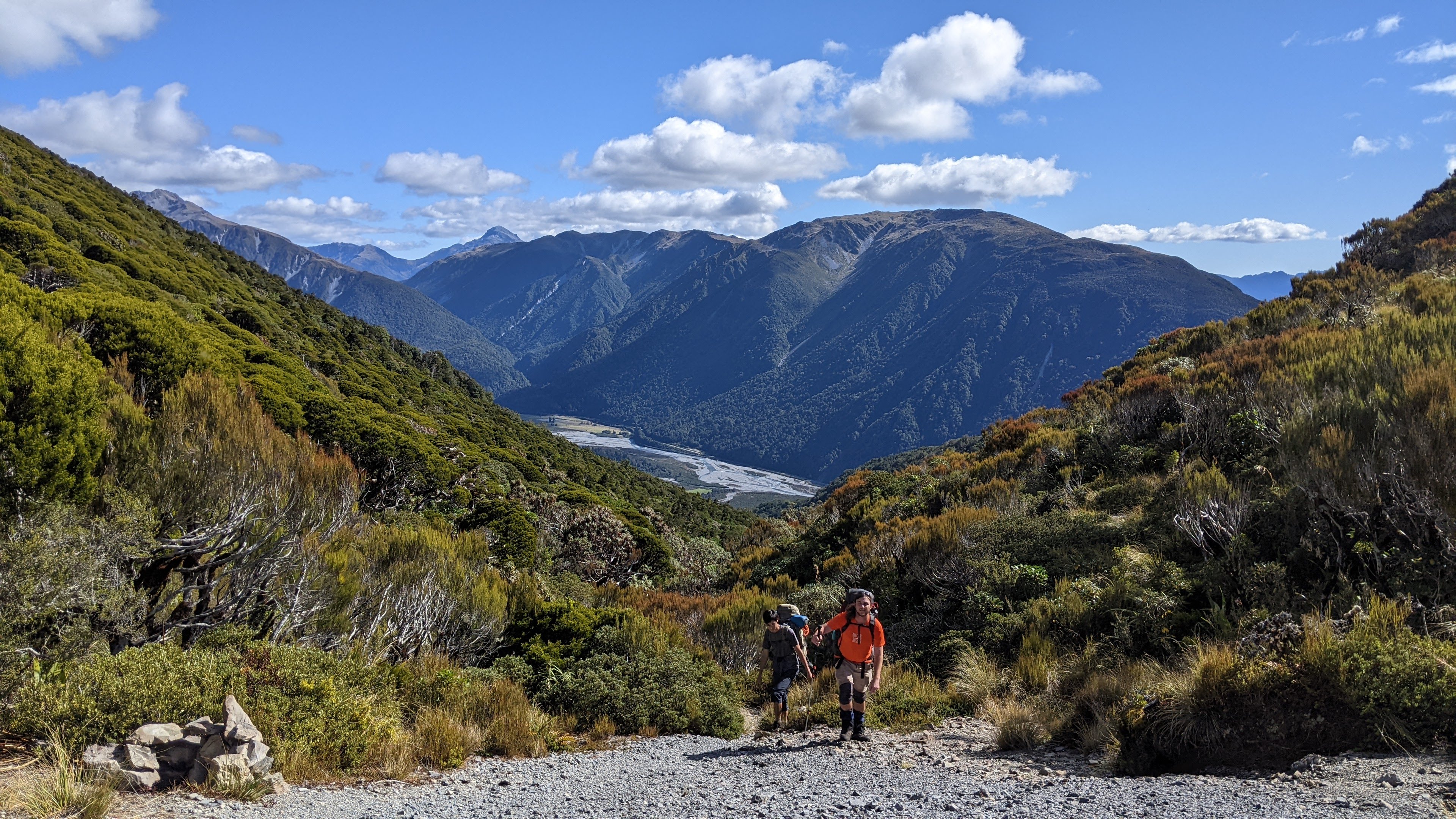 ( Medium route is red via Lake Kaurapataka, Hard route is blue via Pfeifer Biv)